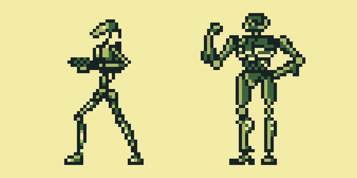 B1バトルドロイドと B2スーパーバトルドロイド それぞれ64×64で制作。 #StarWars #BattleDroid #SuperBattleDroid #pixelart #ドット絵