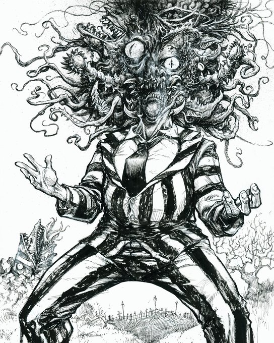 Happy October! I’m cheating today and posting an old #inktober piece of #beetlejuice 2015. #happyhalloween #art #ink #sandworms