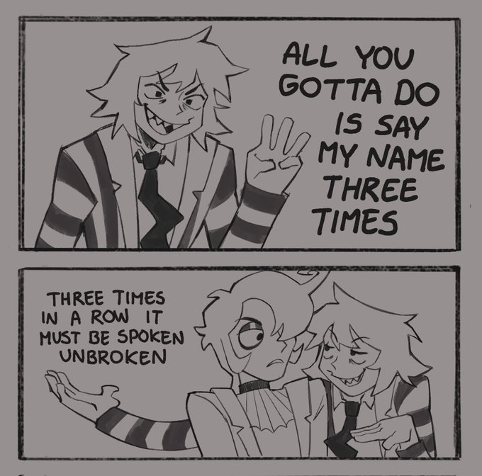 [146] And all you gotta do is say my name three times Three times in a row it must be spoken unbroken Ready? Okay, go! #mumbojumbofanart #hermittwt #Beetlejuice