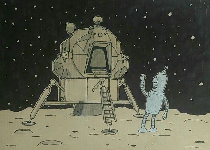 Inktober day 18: MOON @inktober @ipevo #inktober #inktober2021 #inktober2021moon #ipevo #inktoberchallenge #inktoberday18 #futurama #bender