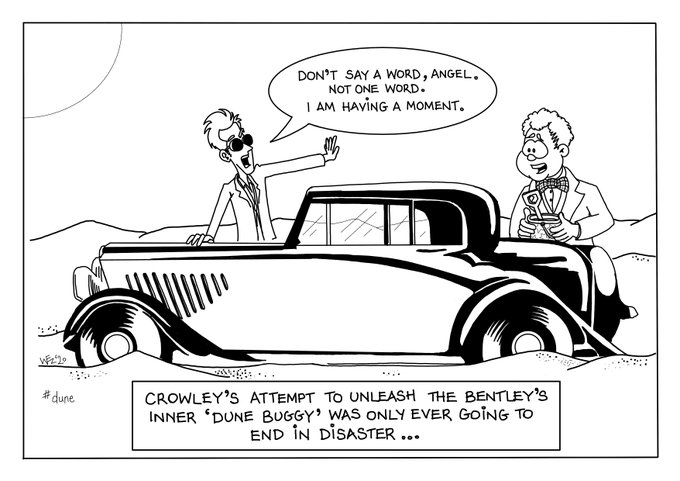 I’m falling behind as I’ve not been well for a few days. Here’s #day13 #dune #Inktober #inktober2020day13 #inktoberday13 #goodomens #GoodOmensFanArt #ineffablehusbands #crowley #aziraphale #bentley