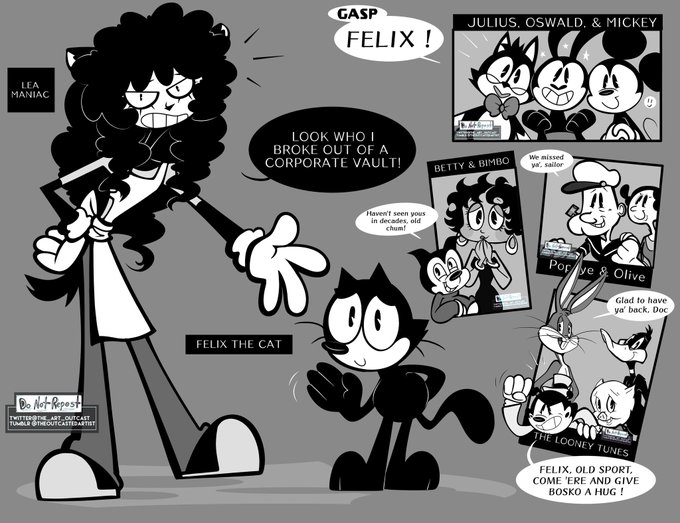 "Toons' Reunion" They really missed him all these years 💕 #felixthecat #oswaldtheluckyrabbit #mickeymouse #bettyboop #popeye #LooneyTunes #Toons #ArtistOnTwitter