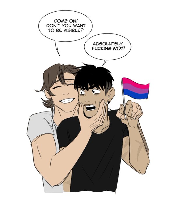 Happy #BiVisibilityDay! As a biromantic asexual creator writing a m/f romance with both leads being bi, I'm always asking for comic to not be erased from the LGBTQ comic community solely bc they're in an m/f couple. They're both still bi, and they're also in love, thanks.