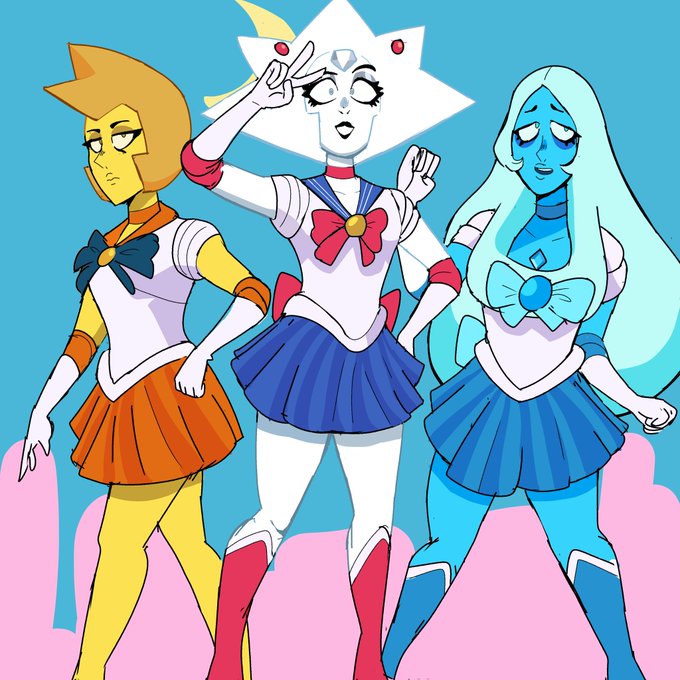 Las dibuje con otros disfraces más 😸 #StevenUniverse #bluediamond #yellowdiamond #whitediamond #fanart