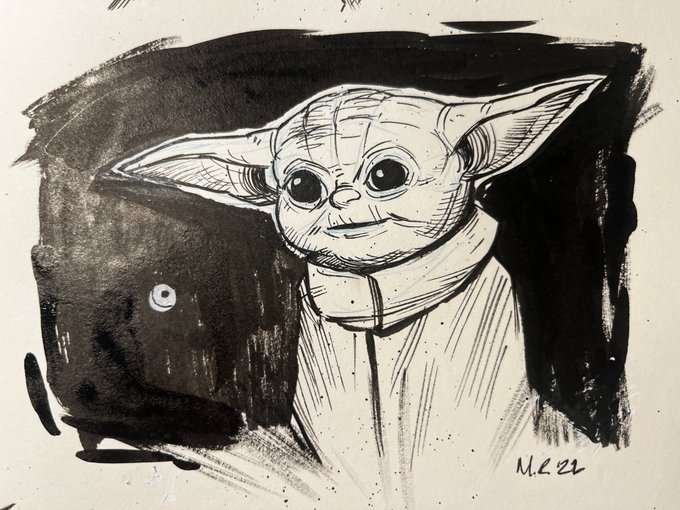 Sometimes I just draw a little baby #grogu! #starwars #mandalorian #bookofbobafett #bobafett #drawing #sketch #penandink #inktober