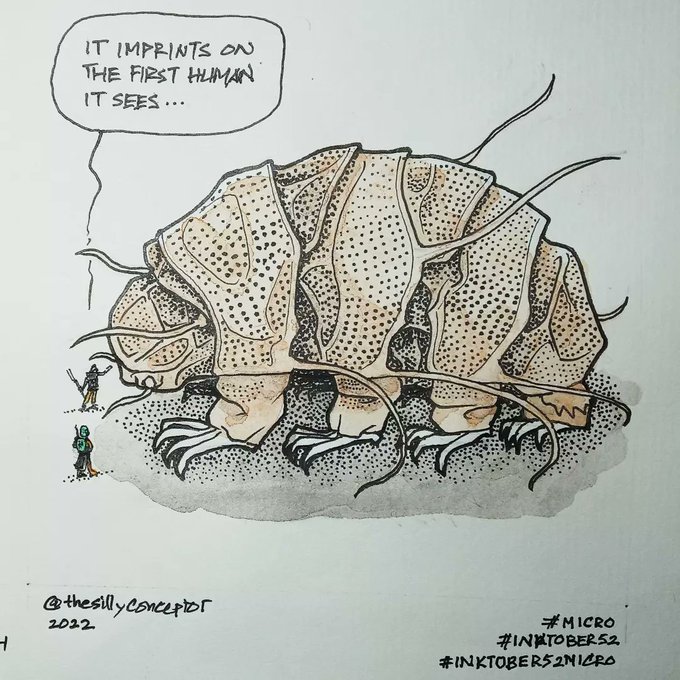 Doodle for #inktober #inktober52 #inktober52micro Bobba and his Ranco euh, giant Tardigrade trainer... #BobaFett #BookofBobaFett