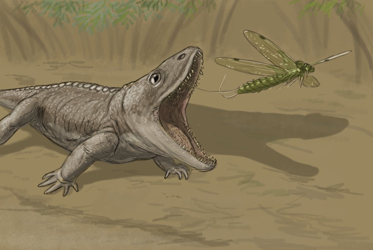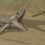 My entry for the #Bromacker #paleoart contest: a life restoration of Orobates, a reptile-like herbivorous amphibian around 1m long and with a semi-erect gait #FossilFriday #sciart