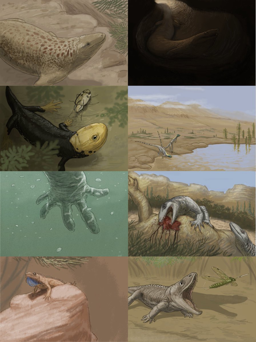 Results from the second Bromacker #paleostream Eudibamus, Georgenthalia, Tambaroter. #paleoart #bromacker #bromackercontest #sciart #acheroraptorknowswhathedid #sketching #permian