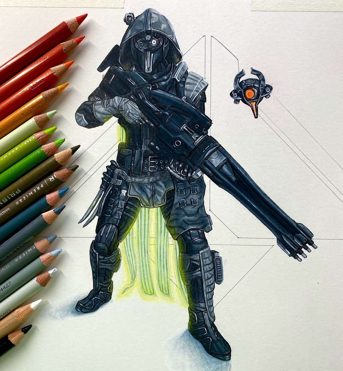 Age Of Triumphs Crota's End Warlock. 💚✍️🏻 @DestinyTheGame #Bungie #Destiny2Art #Pencildrawing 💙