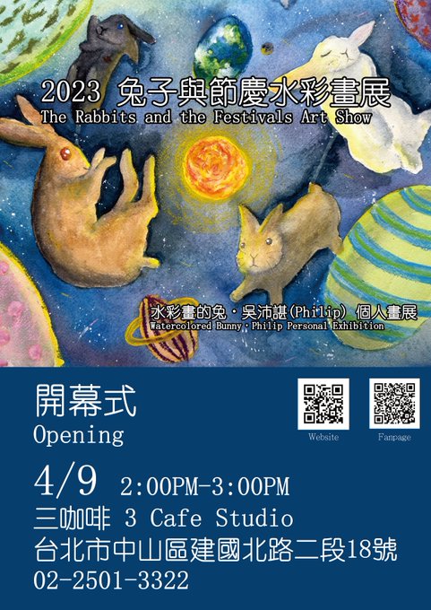 兔兔們來囉! 【2023兔子與節慶水彩畫展】 The Rabbits and the Festivals Art Show by Philip 水彩畫的兔 即日起在 【三咖啡 3 Cafe Studio】 展出 開幕式將會在復活節當天 4/9 (日) 2PM-3PM 舉行,歡迎大家在兔年的2023年前來參觀欣賞! #rabbits #bunnies #2023yearoftherabbit #watercolor #art