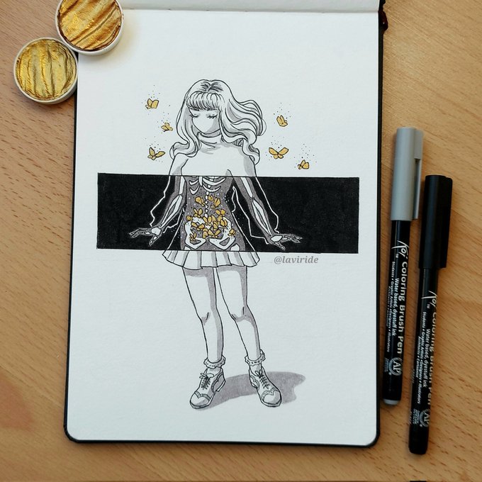 #Inktober 2022 Day 9: Nest Inspired by the great art of @feefal_ ♡ #Inktober2022 #nest #Butterflies #love #inkart