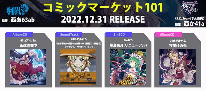・*:..。o○─────── コミックマーケット101新作🎋🌙 ────・*:..。o○ 🎋永遠の都で/幽閉サテライト yuuhei.booth.pm/items/4395007 🎋C101冬コミ限定新刊セット(限定CD「彼岸花」歌唱:Marcia) / 幽閉サテライト yuuhei.booth.pm/items/4395031 #C101 #コミックマーケット101 #C101告知