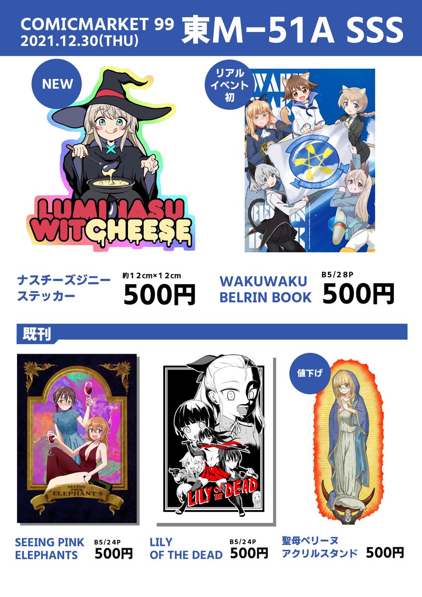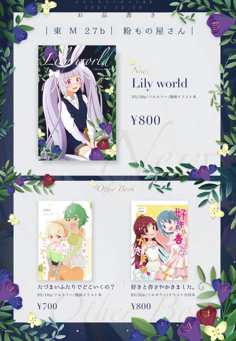 【冬コミ99お品書き】 新刊のイラスト本+たづまい本+杏さや本持っていきます! 行けないって方の為に通販も設置しました! →konakuzu.booth.pm/items/3503173 (たづまい本と杏さや本は数冊しかないため現地販売のみとなります) 明日はよろしくお願いいたします! #C99お品書き #冬コミ #アサルトリリィ_FA