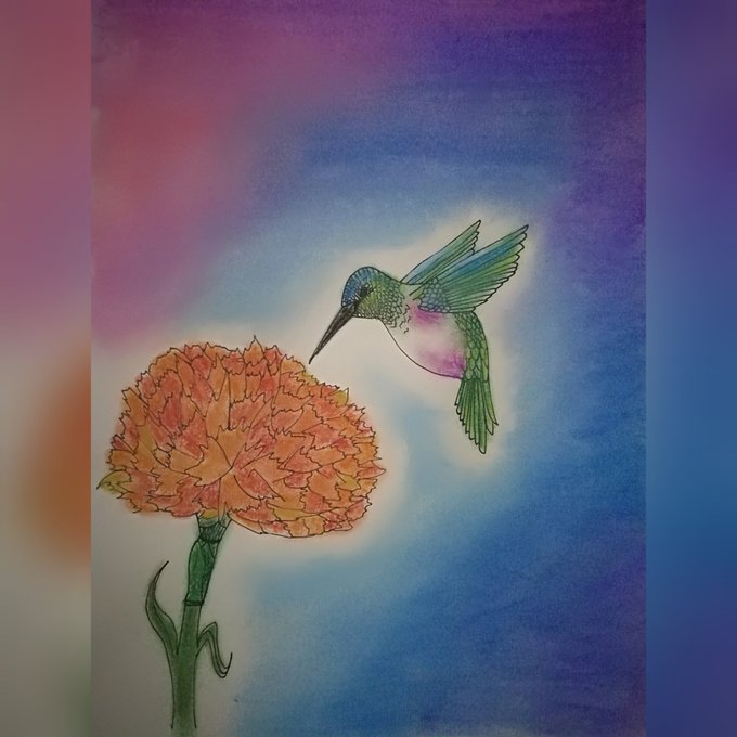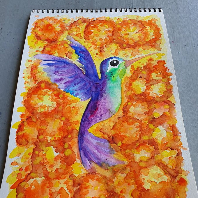 🐦🏵️ Ave favorita y cempasúchil 🐦🏵️ Los colibrís son la cosa más bonita, siono. Esta acuarela es para @atomicdarinka. Dos pájaros de un tiro, #VDINK 22 y 23, de @lilimonadaa #watercolor #hummingbird #colibri #viernesdeilustracion #vdi #inktober #inktober2020