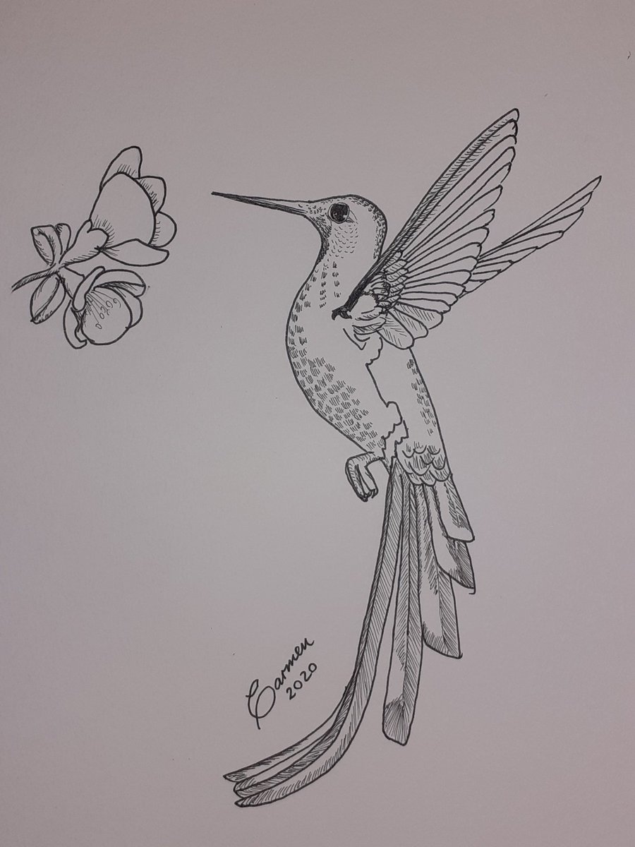 El dibujo de hoy. #Inktober #inktober2020day10 #inktober2020 #inkdrawing #dibujoatinta #Colibri #hummingbird