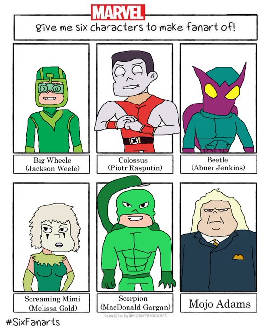 Here comes #Sixfanarts by #MarvelComics #BigWheele #Colossus #Beetle #ScreamingMimi #Scorpion #MojoAdams due to the fact that VK was offered more than on Twitter, I took two random characters