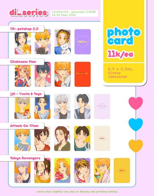RTs appreciated!💛 di_series #comifuro15 catalog is here! find me at C-15 on both days (24-25 Sept)💥 🧃 all products ready stock! 🧃 early booking available with limited slot, link will be under this thread 🧃 JJK, AOT, Haikyuu and TokRev merch more on thread!