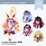 Hello! My catalogue for #comifuro15 is here! 🥳✨ Im also doing a GA. Like & RT to get a voucher for my stuffs 🥳. PO close 18 Sept. Link and more info below if you are interested #comifuro15catalog #luxiem #Genshinimpact