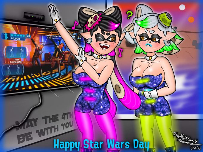 ✨️CALLIE AND THE KINECT✨️ (Happy May 4th) 🌌💖💚🌌 #splatoonart #squidsisters #Callie #Marie #fanart #ArtistOnTwitter #Splatoon #Splatoon3