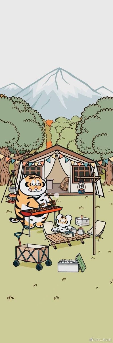 Go camping~❤️ キャンプに行きます~❤️ #手機桌布 #wallpaper #露營 #camping #キャンプ #烤肉 #BBQ #バーベキュー #tiger #digitalart #procreate #bu2ma #不二馬大叔