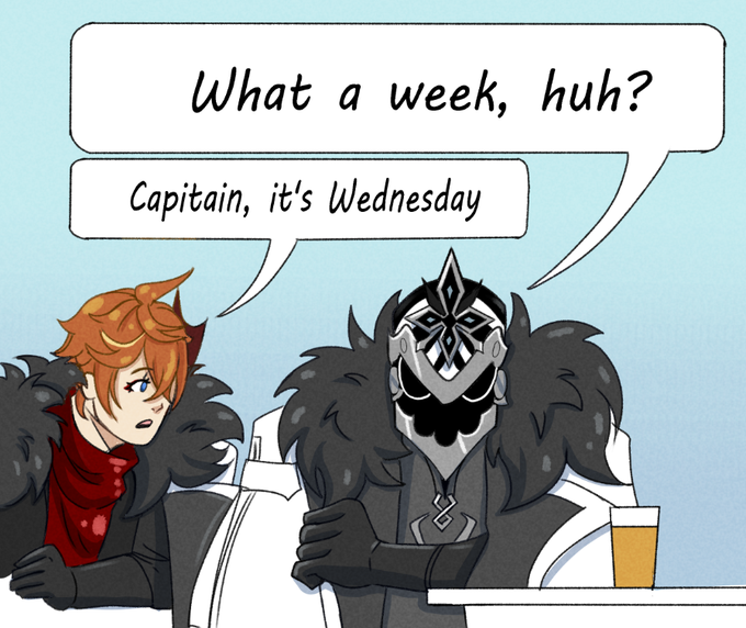 Tartaglia needs the recognition of someone authoritative. Capitano is a true warrior, so Tartaglia is happy to receive compliment from him. #capitaru #Capitano #Capitaglia #tartaglia #Genshinlmpact #Genshinfanart #sketch