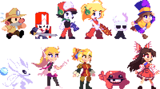 Here's some more Indies!! Merry Christmas everyone!! #spelunky #castlecrashers #CaveStory #HollowKnight #AHatInTime #oriandthewillofthewisps #onestepfromeden #Iconoclasts #MeatBoy #touhou #pixelart