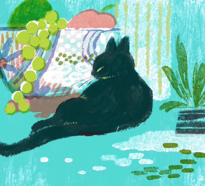 まだもう少し描き込みたいとか 思ってますが、次のも描きたいとか 思ってます。 黄色と赤の強烈な配色にトライです。 強い色彩に負けない猫を描きました。 #illustration #drawingart #illustrationart #artwork #picturebook #childrenbook #graphicart #catlovers #cat