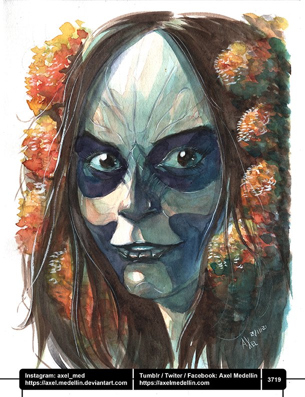 #moontober2022 hosted next @xGiovia "BLOOD MOON" last work. Thank you so much for being here with us until the end of this #artchallenge it truly means a lot all your support and love!!!❤❤ #inktober #artist #watercolorpainting #catrina #Halloween #halloween2022 #skull