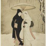 3. Two Lovers Beneath an Umbrella in the Snow, Suzuki Harunobu, ca. 1767. #inktober2019 #bait #inktober #chartpak #artsyinktober #suzukiharunobu