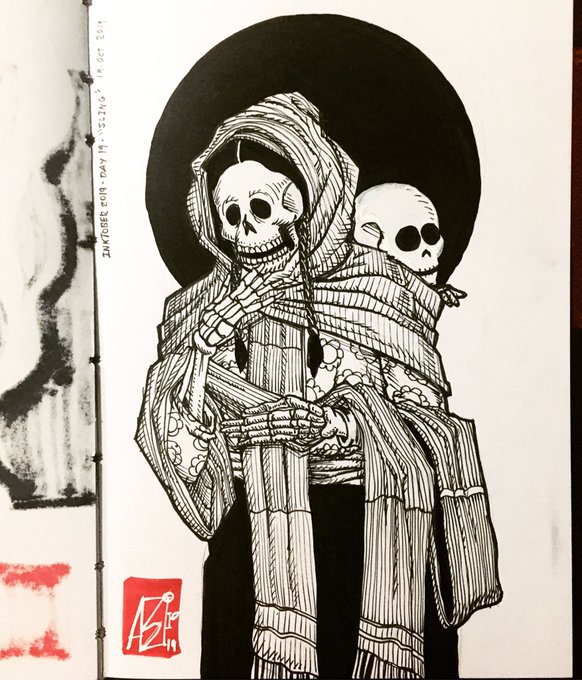 Inktober 2019 Day 19 -Sling- Rebozo - Señora Calaca con Niño #DiaDeMuertos #MexicanTradition #DayOfTheDead #Calaca #Calavera #Sling #Mexico #inktober2019 #inktober #Staedtler #Copic #mystaedtler #Chartpak #ADmarker #Inktober2019Day19 #teamwonderlandmx @jakeparker @inktober