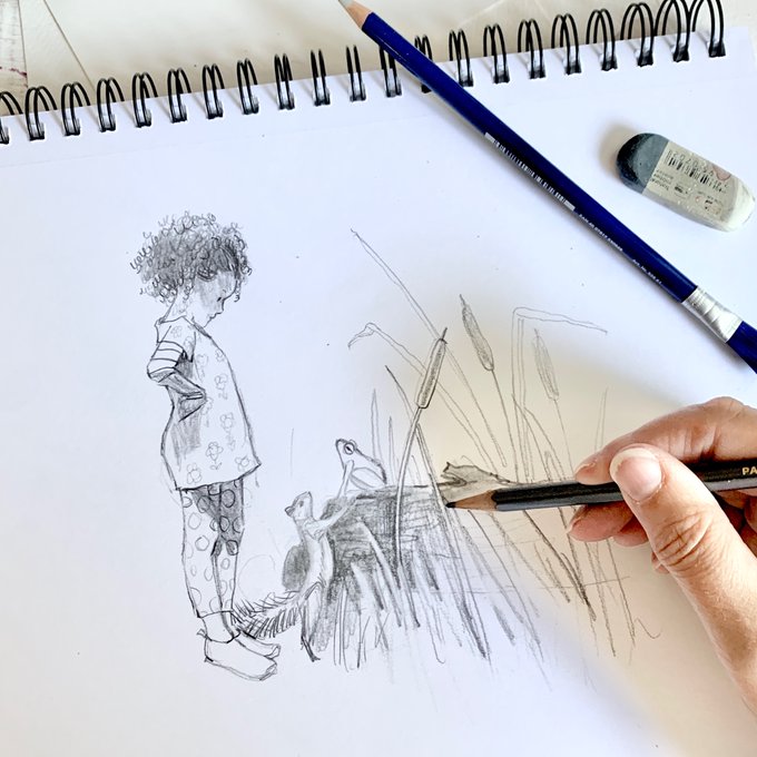 I’m gobsmacked at the response here. And that’s not a term I just throw around like birdseed. You asked for more…so this is what I’m working on today. Ellie and Ollie arrive at the pond. #kidlit #childrensbook #kidlitart