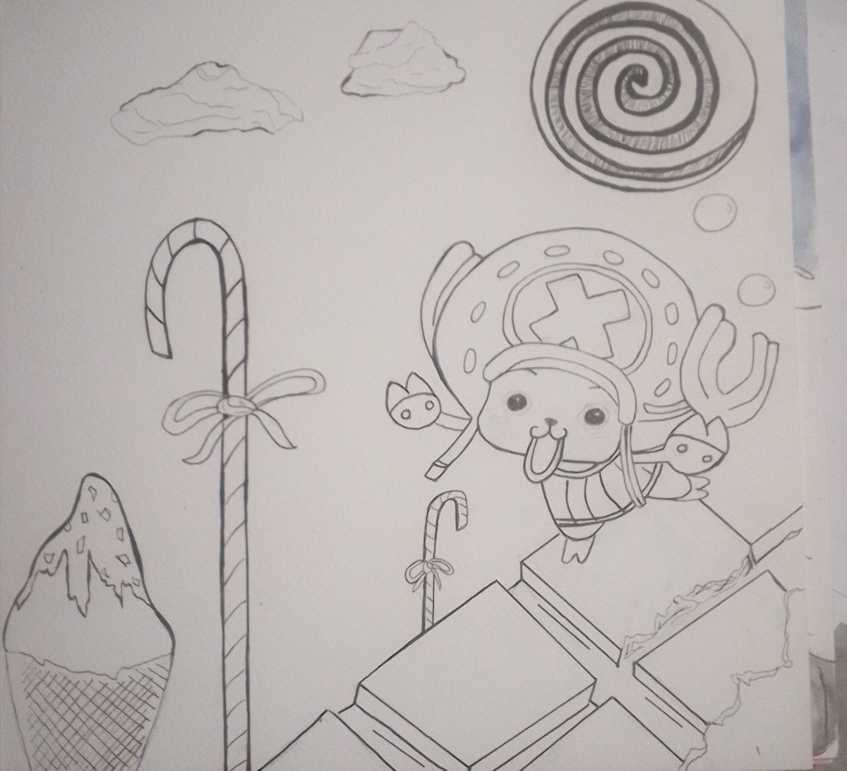 Après Oui-Oui au pays des jouets voici Chopper au pays des friandises. Line art fini. #ONEPIECE #CHOPPER #Onepiecefanart