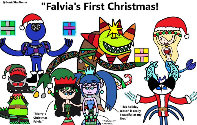 Merry Christmas to all wonderful friends and families out there, from Falvia, her crew, and from your's truly, SonicStarGenie 💖💖💖💖🎄🎄🎄🎄 (Likes/RTS appreciated ❤️♻️) #OC #ArtistOnTwitter #artist #MerryChristmas #Christmas2021 #artwork #holidayseason
