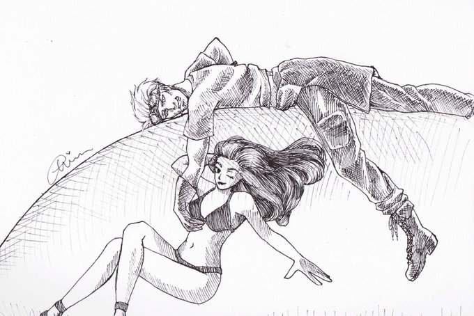 Happy Bday Cid 💕🎂 My piece for @ff7ogzine 🎉 In one of my fave moments from the game. #FinalFantasyVII #CidHighwind #TifaLockhart #CloudStrife #Shera #FF7 #Fanart