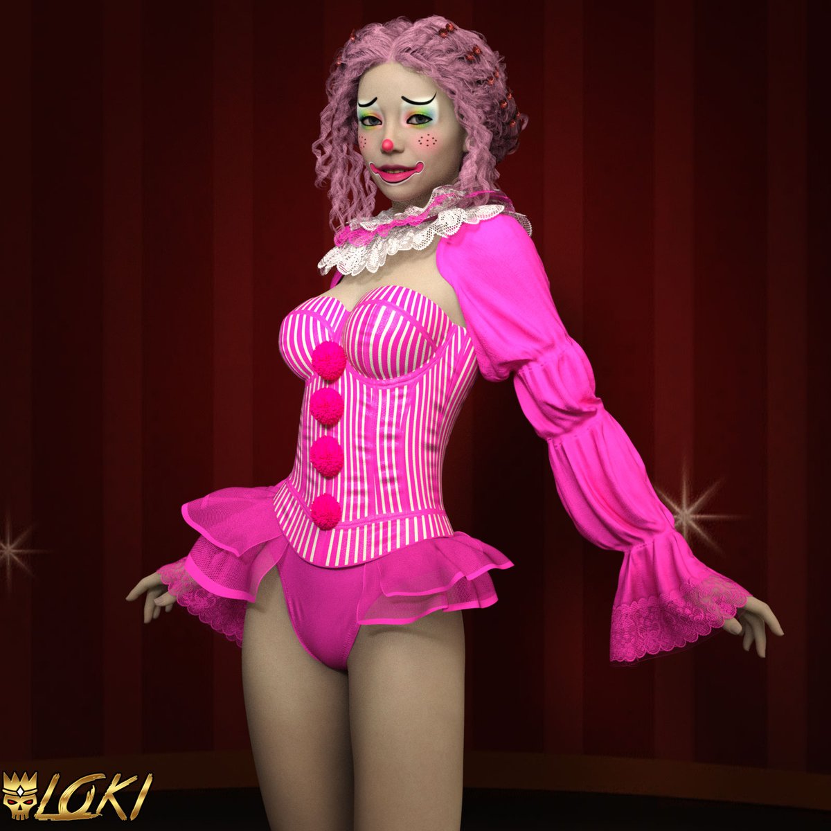 Coming Soon: Tootsy for Genesis 8 Females #daz3d #dazstudio #iray #3d #3dmodel #3dcharacter #3dartist #digitalart #render #halloween #Clown #Clowngirl