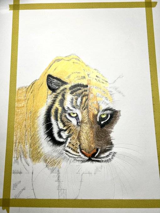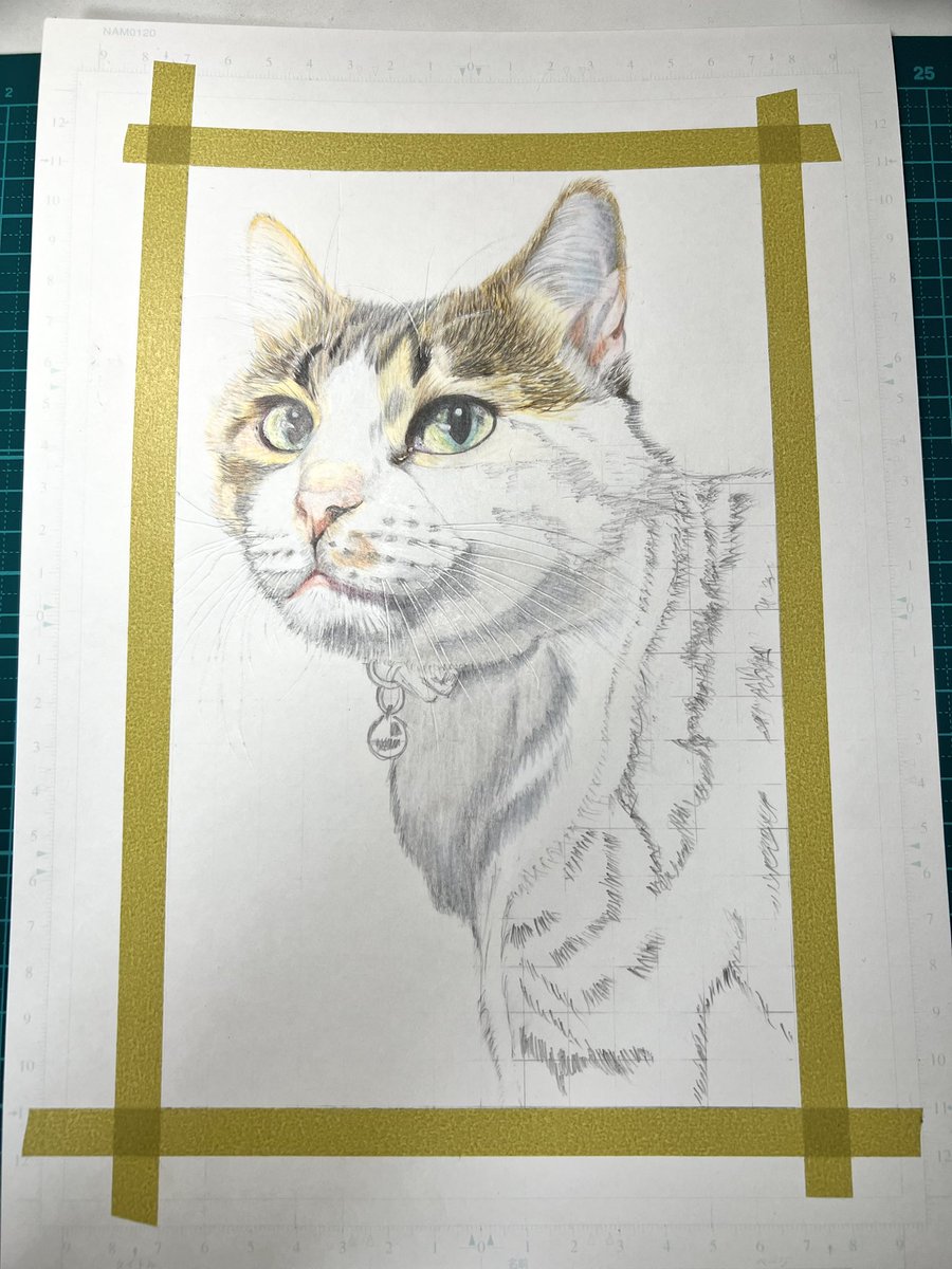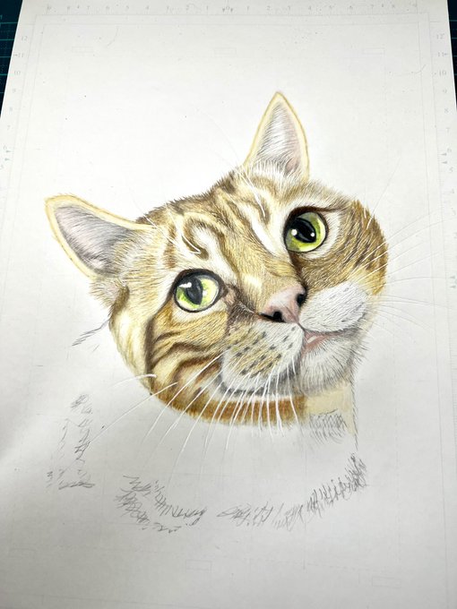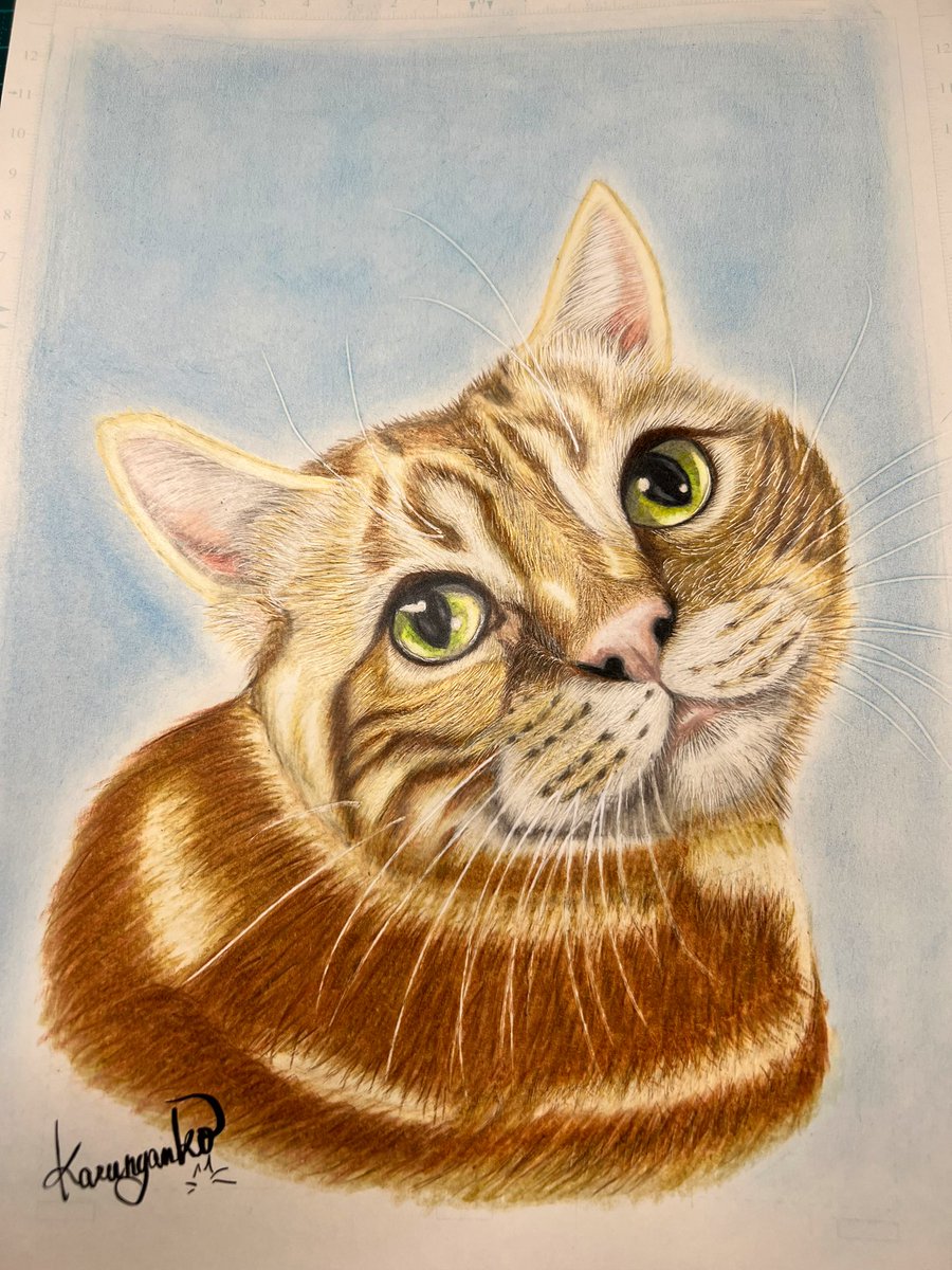 にゃんこ完成しましたが上手くできなかった💦💦💦💦💦 体をぼかしたんだけど 下手くそで1本1本描いた方が良かった…😥 #色鉛筆画 #coloredpencilart #coloredpencildrawing