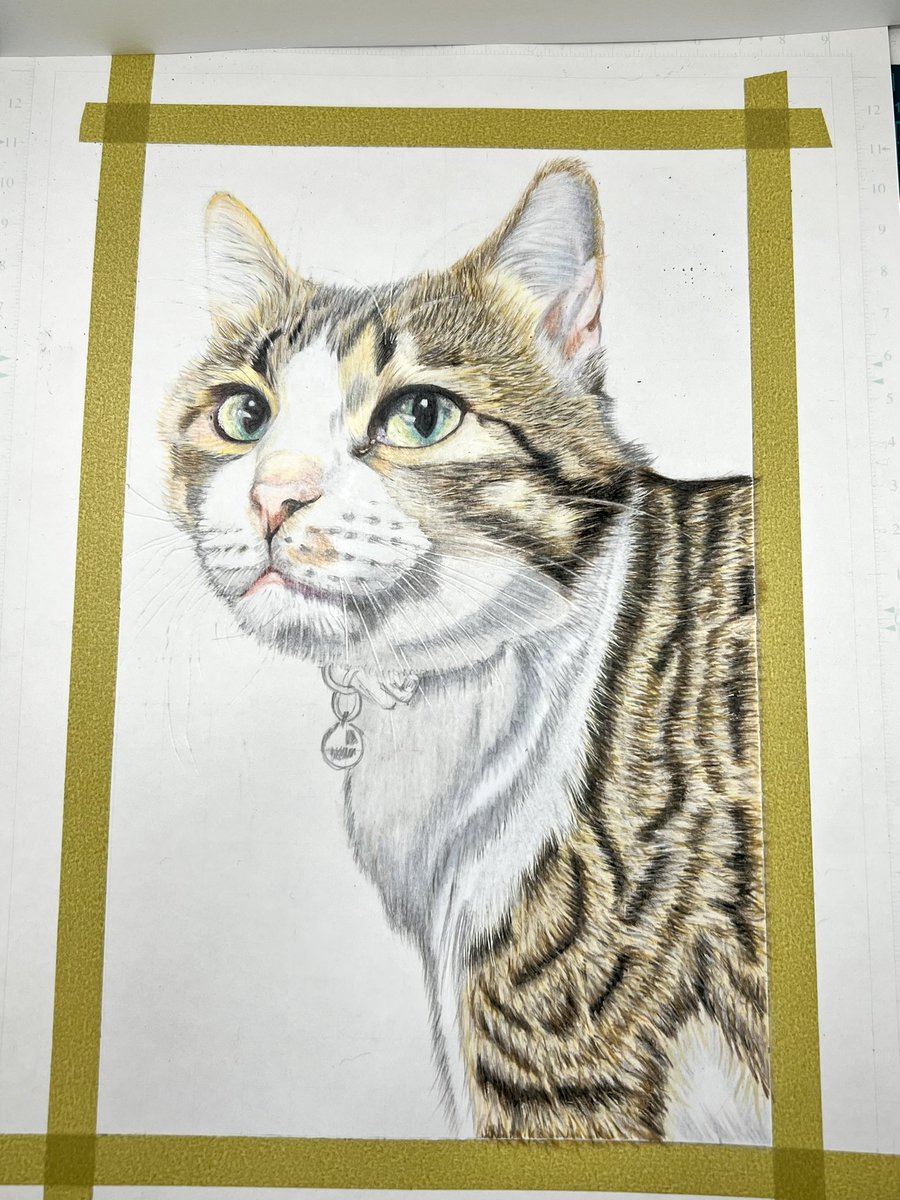 猫様出来上がりました✍🏻😻✍🏻😻✍🏻😻✍🏻😻 色々試行錯誤しながらどうにかまともになりました💦😅 まだまだ勉強せねば… #猫のいる暮らし #色鉛筆画 #coloredpencildrawing #coloredpencilart