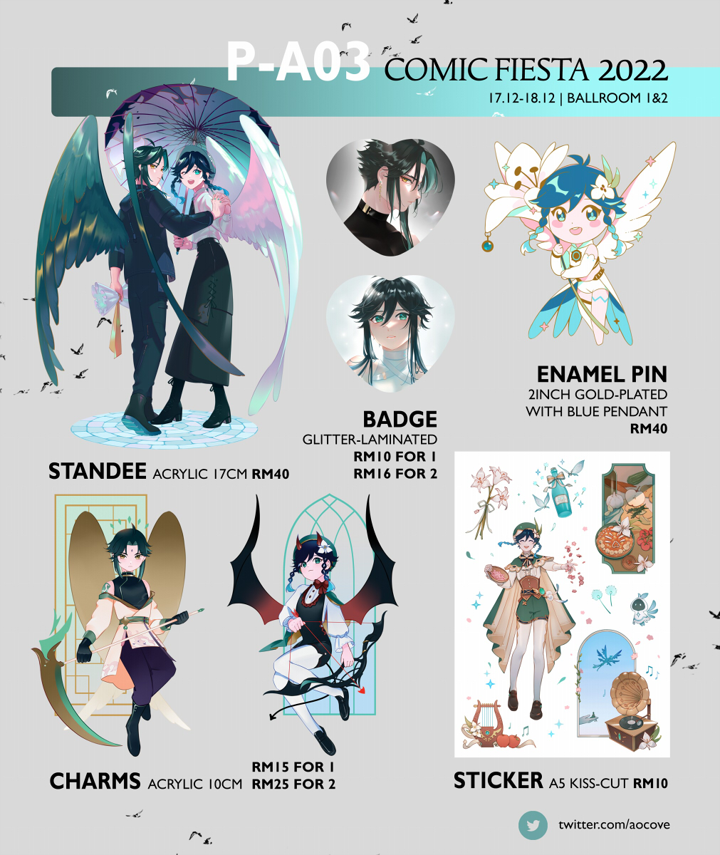[RTs ❤️] ⭐️CATALOGUE B-D08⭐️ Our Comic Fiesta catalogue is finally here! Come visit, cry and laugh with us about characters at B-D08 this weekend! We have a bunch of new merch! See you there! (1/2) #comicfiesta2022 #CF2022 #genshinimpact #twst #jjba