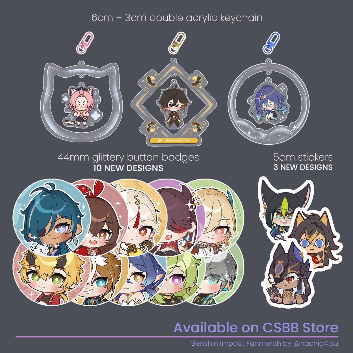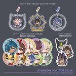 (3/3) Charms, enamel pins , sets collab merch ! Look at that meow merch made by hachi! Vewy kiut 😳💕 #comicfiesta2022