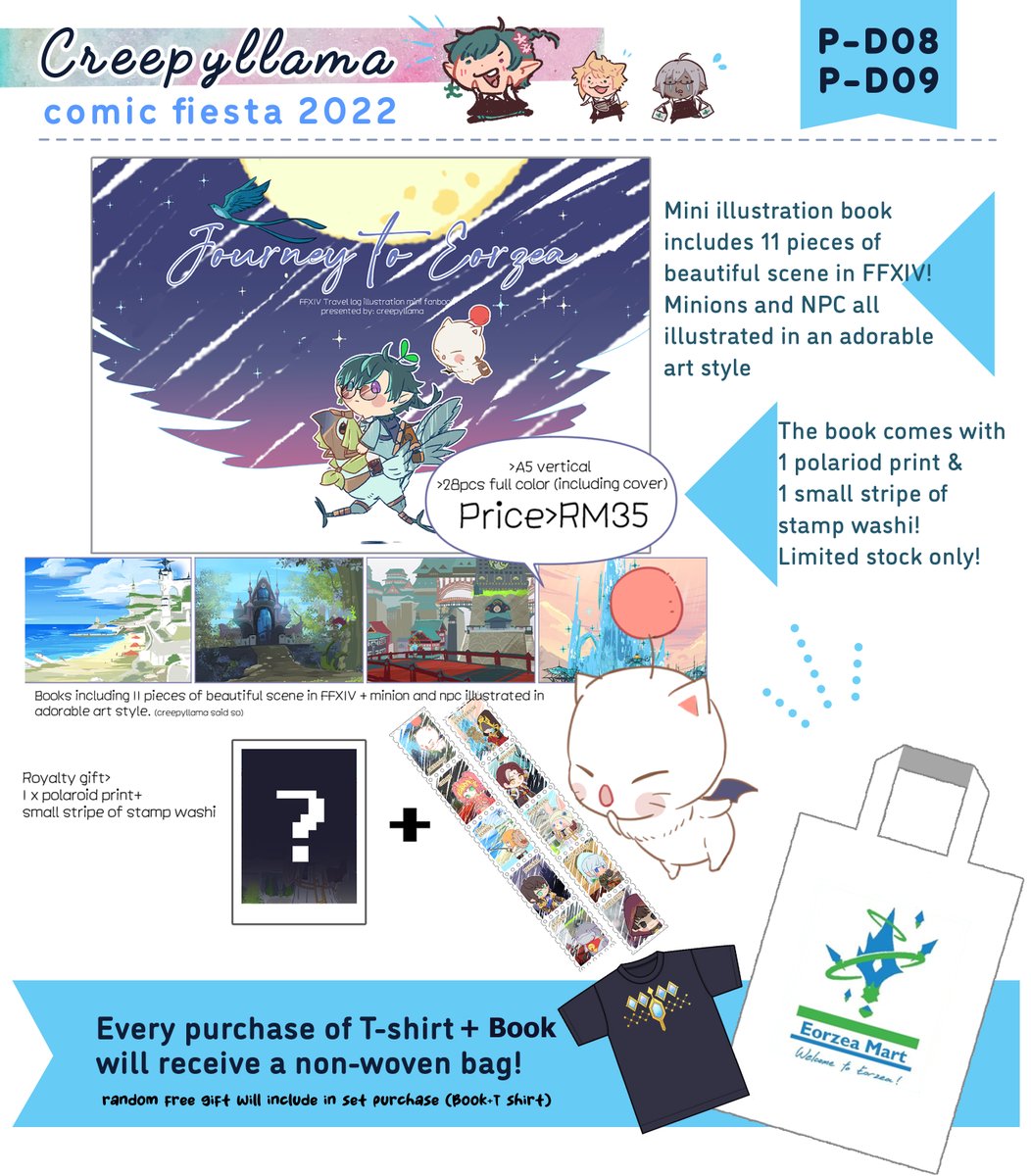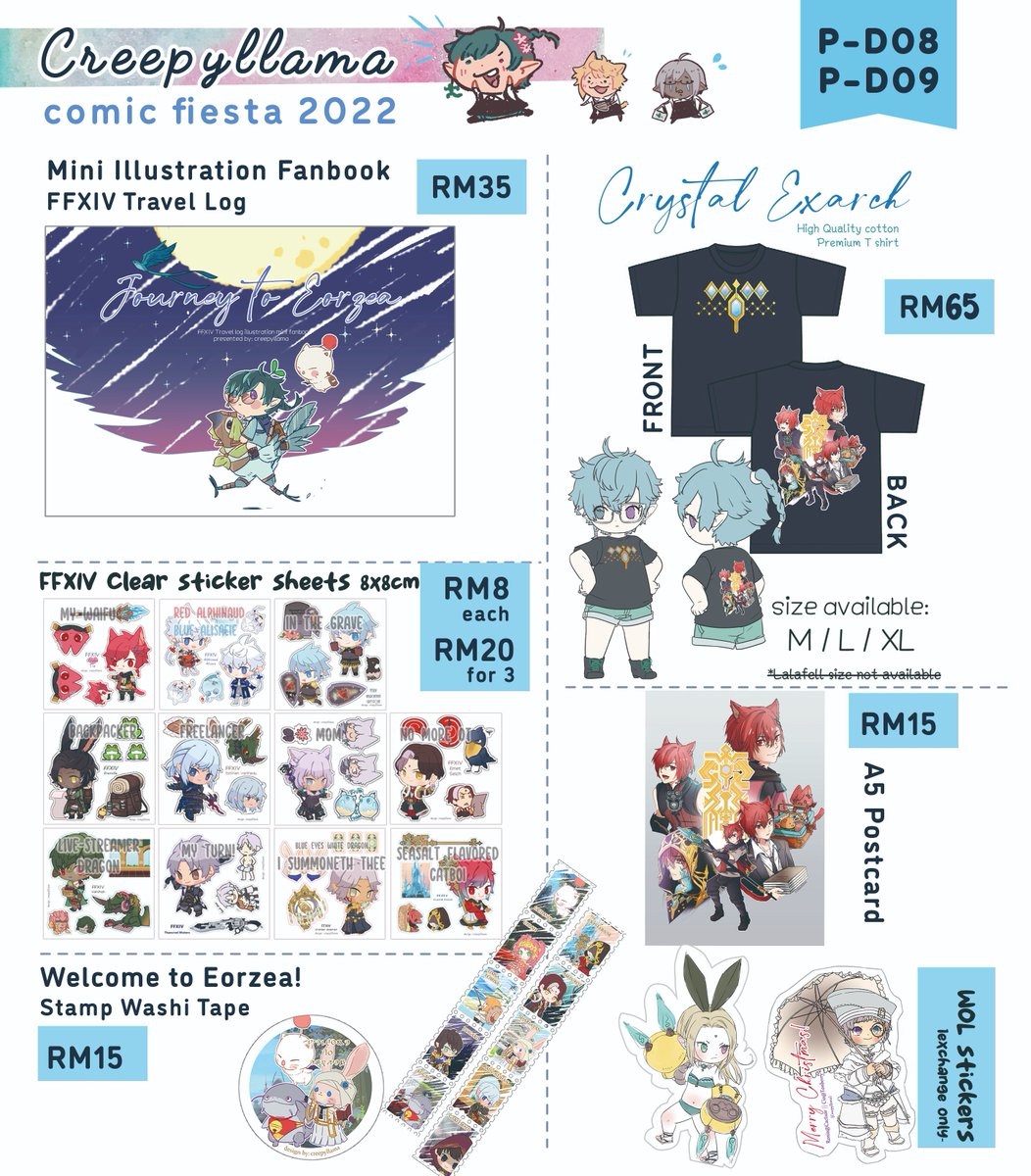 #comicfiesta2022 catalog Let's Gooo Premium Booth: P-D08 & P-D09 Creepyllama & Emu I will boothing with @emusansansansan and @yoshihi_co Come and visit us for WOL sticker exchange too \o/ Full Catalog: creepyllamacatalog.carrd.co Part: 1/3 FFXIV