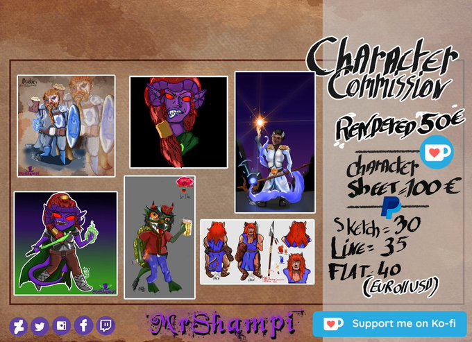 Hello, my Imps! I've Finally Updated my Commission Sheets! new revised prices/options. Commissions are avalaible on my Ko-fi Here: ko-fi.com/mrshampi (or DM me for specific demands) I'll be glad to do use my "pencils" for you <3! #DnDArtist #commisions #ArtistOnTwitter 1/