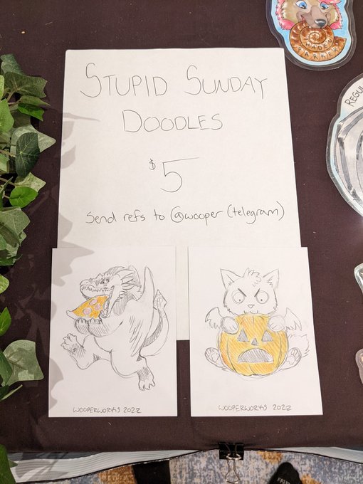 Also if any of you guys are bored and have 5 bucks, I'm doing stupid Sunday doodles today so come get 'em xD #FurryMigration #FurryMigration2022 #fm2022 #furryart #convention #anthroart