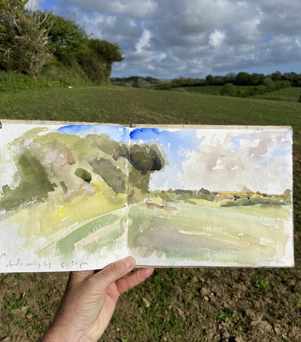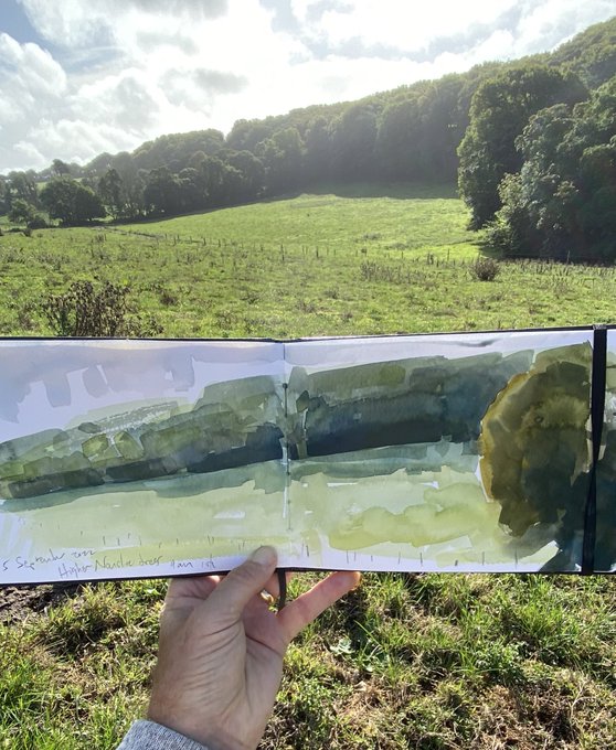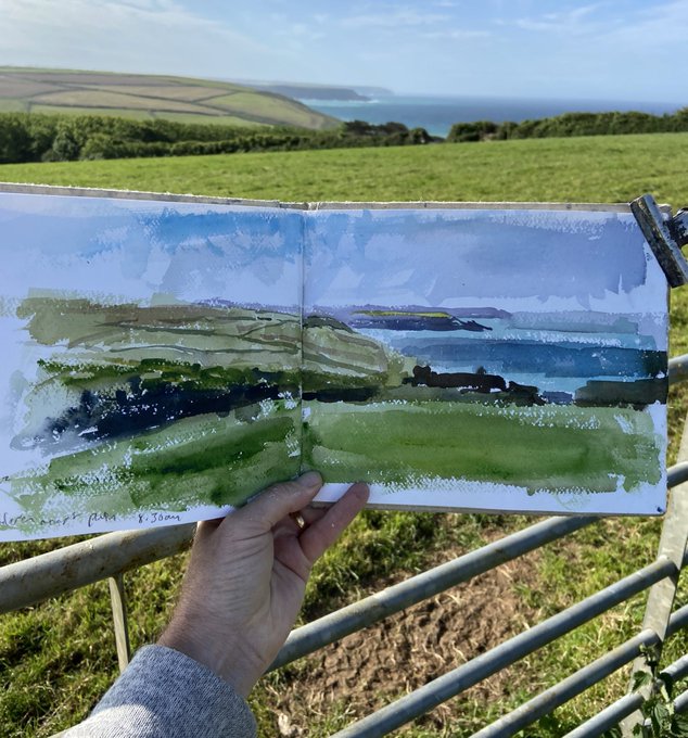 I love being in the landscape - watercolour on Khadi paper sketch from this morning around 8am #sketch #sketchbook #watercolor #landscape #Cornwall