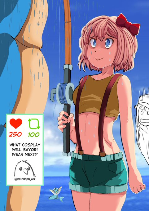 Sayori hooked a pokemon.... Vote below for the next Sayori cosplay! I'm starting to enjoy drawing her little escapades. #DokiDokiLiteratureClub #DDLC #sayori #Pokemon #PokemonFanArt #misty #cosplay