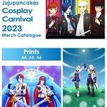 Hello hello! I'm gonna be at #CosplayCarnival2023 with @Rierru and @kohiiia at booth FM-02, Budol with friends! Please drop by for some tasty tasty merch from us three! Make sure to check out their catalogs too! #FanFairAtCosCarnival2023