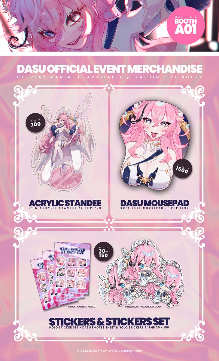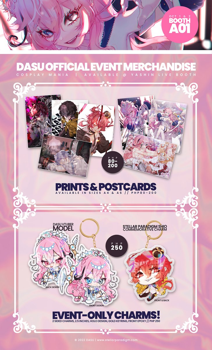 Helo! Here are my available merch @ Cosplay Mania! 👁️ More details are also updated in the website here: stellarparadigm.com/dasucm2022 #CosplayMania2022