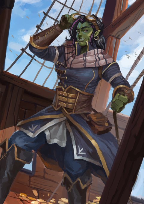 D&D pirate half orc commission! #artwork #dungeonsanddragons #ArtistOnTwitter #illustration #conceptart #Artists #visdev #sketchbook #digitalart #couple #dnd #dndart #DnDcharacter #commission #commissionsopen #commissionsopen
