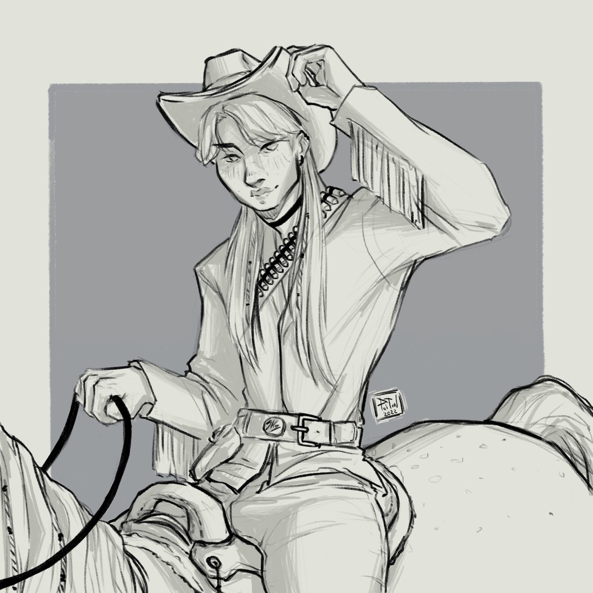HEAR ME OUT: Cowboy Dorian?? This came to me vividly in a dream and I had to make him real M'genasi #criticalrolefanart #CriticalRole #CriticalRoleCampaign3 #CriticalRoleArt #ArtistOnTwitter #art #characterdesign #DorianStorm #dorian #Cowboy