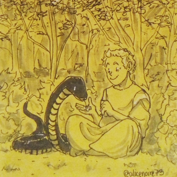 Day 16 - Wild #inktober and First time #ineffableinktober. Wild berries and first meetings. Had a lot of fun ACTUALLY referencing Crawley's snake form well. #inktober2019 #inktoberday16 #goodomens #goodomensfanart #Crowley #Aziraphale #crawley #Noire73