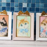 おリボンフレーム入りパステルイラスト 黒白ハチワレちゃん茶白ちゃん三毛ちゃん😺🎀 #minne #Creema にてお迎えいただけます🥰 creema.jp/item/15693621/… minne.com/@mhk-f #minneで販売中 #猫 #猫好きさんと繋がりたい #猫イラスト #Creemaで販売中